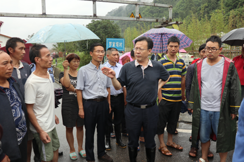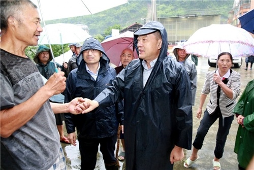 8月22日,邹瑾赴雨城区、天全县、宝兴县,实地检查指导防汛抢险救灾工作。图为邹瑾在宝兴检查指导防汛抢险救灾工作。