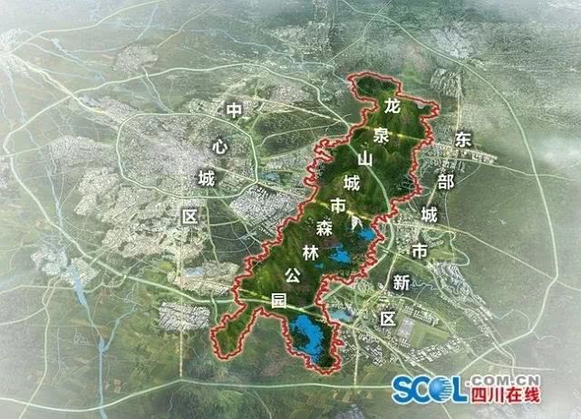 一山连两翼,龙泉山城市森林公园区位效果图。