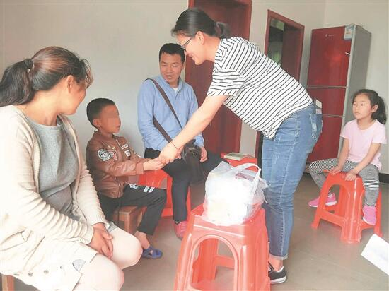 志愿者向困境儿童监护人了解情况,为困境儿童建立成长档案