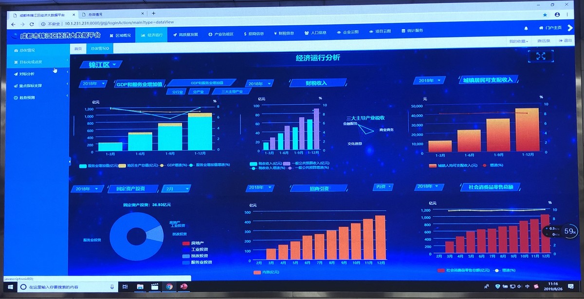 锦江区统计局相关负责人表示,通过该平台,为锦江区科学决策提供及时直观的经济运行分析;为重大项目推进、经济目标任务完成、产业功能区建设提供决策支撑;为部门推进产业发展、优化财税管理、提升招商质效提供数据支撑。