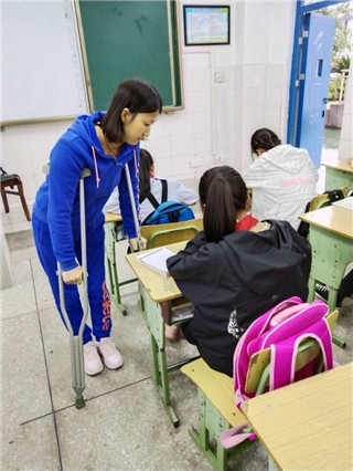 李元淑从师范校毕业成为思经二小的一名语文老师,一晃就是21年。2014年,李老师被确诊为“双膝髌骨关节病”,从此走路必须要依靠拐杖,她病情反反复复,严重时甚至下不了地。5年来,李老师一直忍着疼痛,杵着拐杖坚持上课。李老师在三尺讲台上乐此不疲,始终与农村孩子爱心相伴,丝毫不减对立德树人的坚守……“捧着一颗心来,不带半根草去”,严谨治学、潜心教研、心系学生、帮困助难,李老师连续多年获得教育教学质量显著奖,先后多次被评为“优秀教师”“优秀教育工作者”“优秀少先队辅导员”“优秀班主任”。