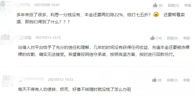 记者在官网论坛区上看到,在最新一期兑付通知发布后,有投资者表示,不仅没利息,本金只能退78%;还有投资者表示,这段时间每天有人劝转债,如果不同意债转,以后的尾款就拿不到了。
