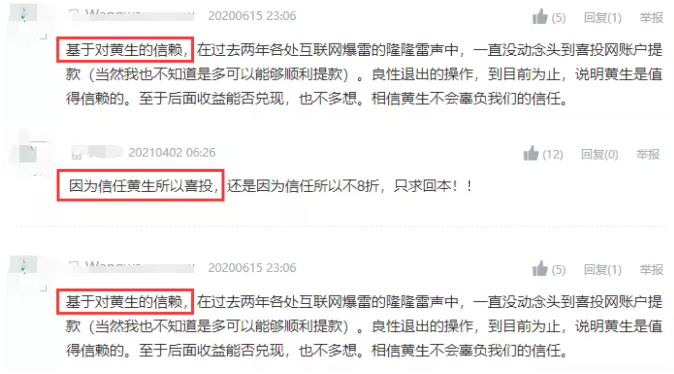 值得关注的是,金融投资报记者发现,在论坛中,不少投资者表示是因为信任黄生,而选择喜投网。