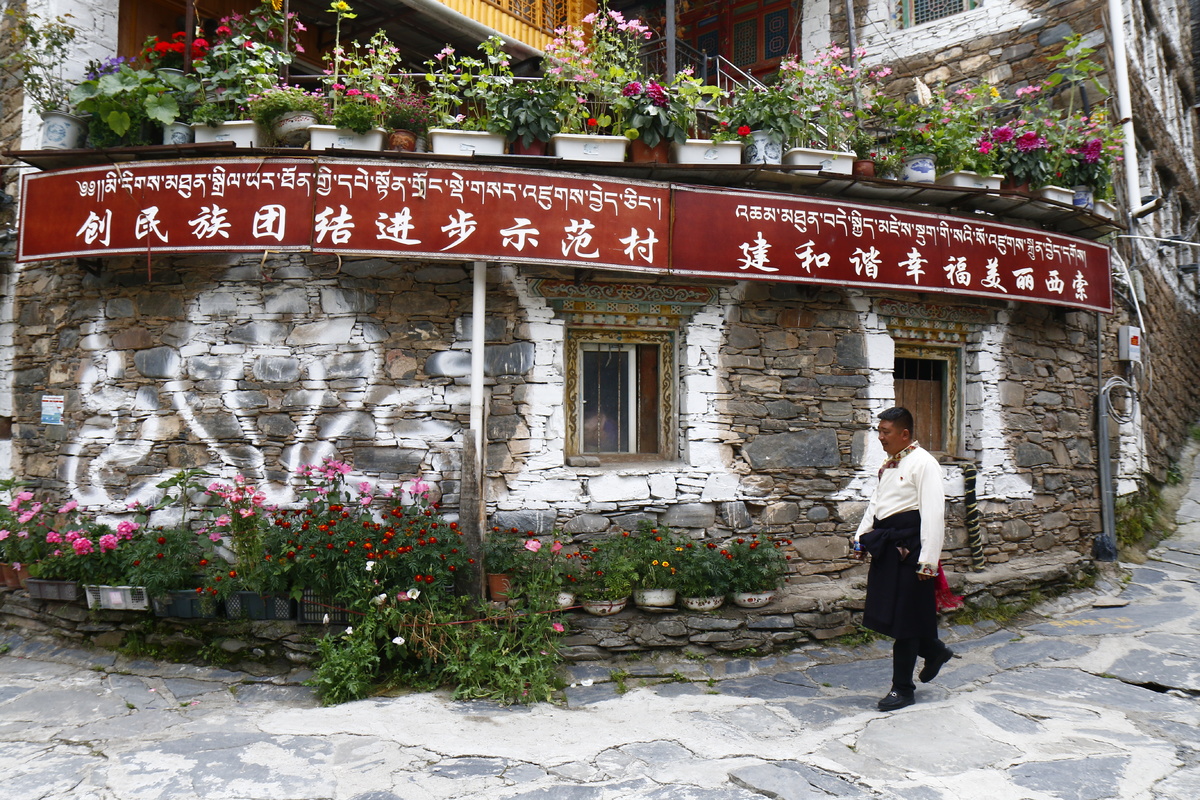 在西索民居的小巷深处,有一片鲜花盛开的院落,这是村民赵翠吉的家。当泽郎尔甲赶到她家时,发现她家高朋满座。