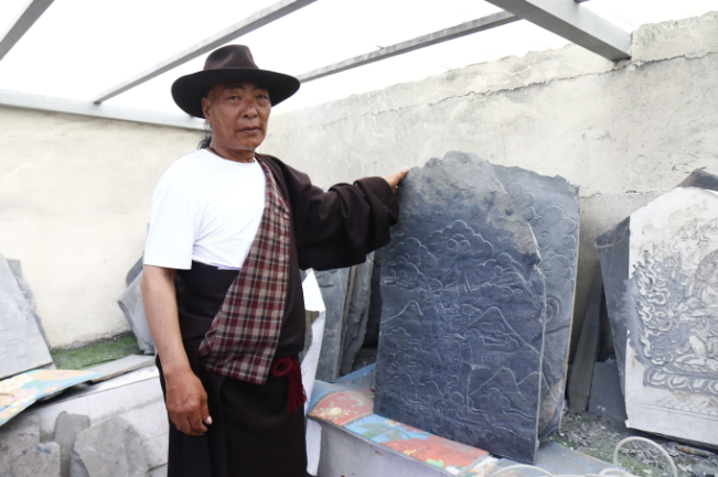 巴德是色达县国家级非物质文化遗产——藏族格萨尔彩绘石刻的代表性传承人,自从家搬到安康社区后,因为交通方便,他不再为了拉业务东奔西跑,呆在家里业务便越来越好。“今年,德格县有家单位在我这里预订了一批格萨尔石刻作品,预计工钱达到8万元。”巴德说,现在,一家人的生活越来越红火。