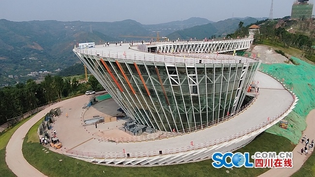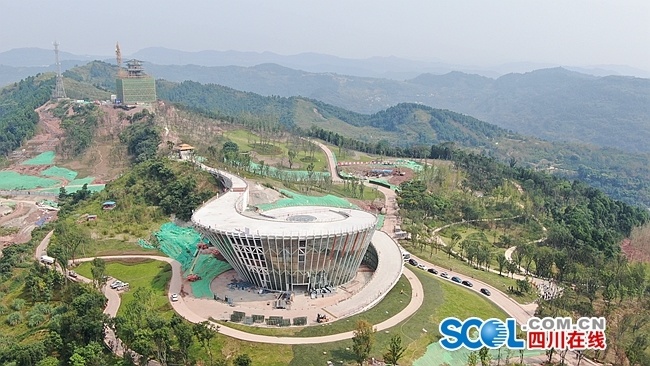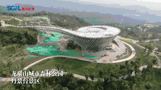 据了解,龙泉山城市森林公园坚持“世界级的城市绿心、国际化城市会客厅、市民喜爱的生态游憩乐园”的总体定位,重塑核心区955亩山地森林景观和上山道路两侧景观,新建丹景台、丹景阁、丹景里、丹景亭四处特色功能性建筑,风格融合了金沙文化和竹文化元素。作为龙泉山城市森林公园第一个先导性、示范性、引领性核心景区项目,丹景台景区核心区体结构目前已完工,预计今年国庆期间全面对外开放,有潜力成为广大市民游客喜爱的新晋“网红打卡地”,此次提前探访,获得全国媒体一致点赞。