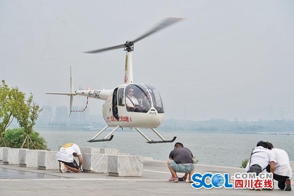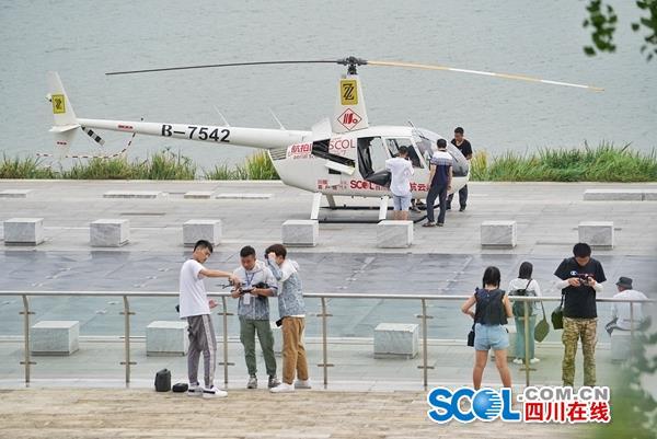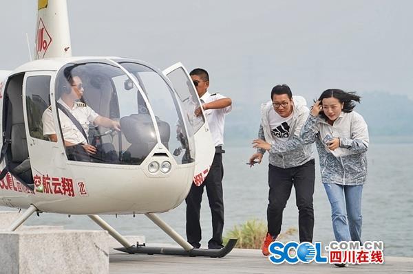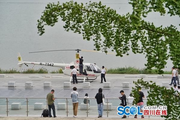 随着螺旋桨快速转动,采访团一行依次登上“川报号”直升机,盘旋升起,从空中俯瞰兴隆湖、鹿溪河生态区、西部国际博览中心等点位,用手中镜头见证这座“新城”绘出的五年画卷。