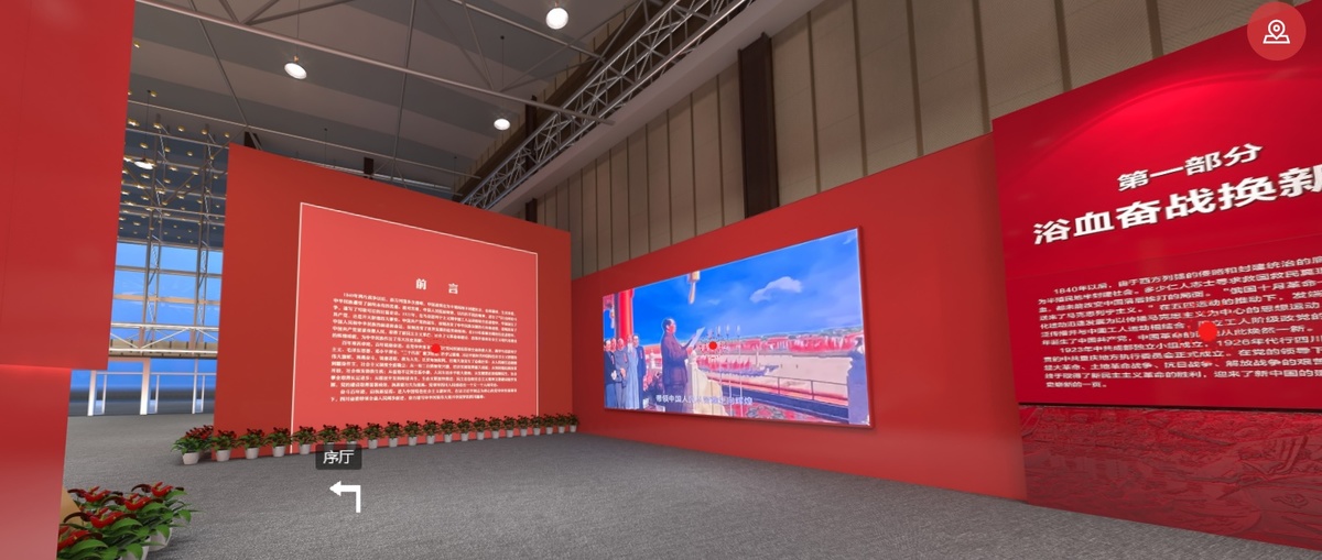 一进入展馆,耳边随即响起了关于展馆的语音讲解,记者了解到,本次网上展馆设有全语音讲解播放,从任一展厅到任一场馆,再到场馆展位,实现全场景三级覆盖,观众只需要点开任一场景,便可以及时聆听展馆语音讲解,回望百年历史岁月。