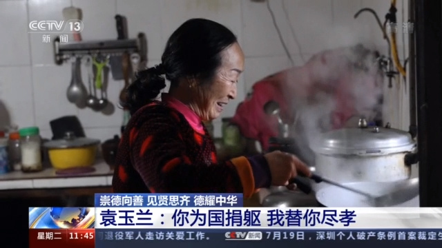 重庆市万州区武陵镇椅城社区居民 袁玉兰:他(张宜华)为国捐躯,我要替他尽孝。他的妈妈也是我的妈妈,我一定要好好地照顾她,要给她养老送终。