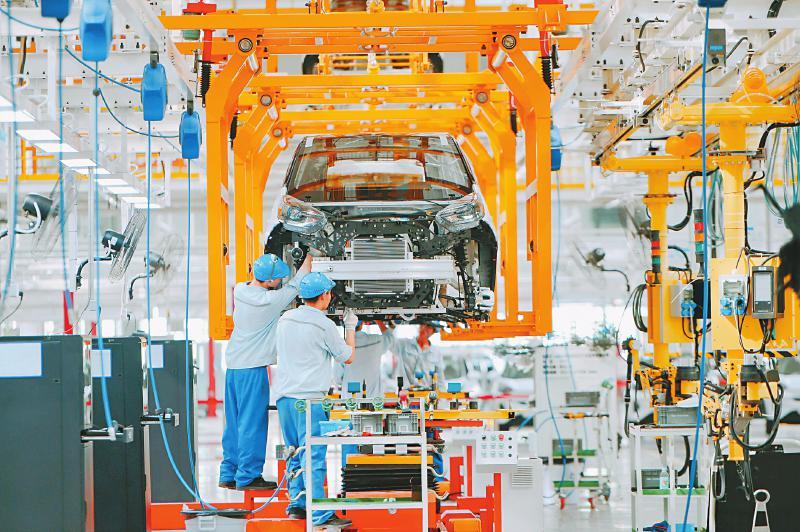 工人正在组装新能源汽车。