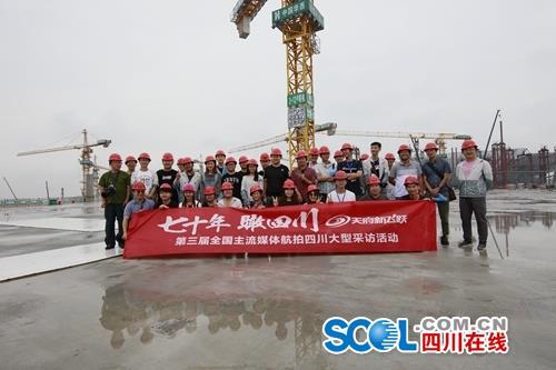 四川在线消息(记者 钟帆 王玥 摄影 华小峰 姜曦)空中俯瞰,状若“太阳神鸟”的天府国际机场振翅欲飞,纸上蓝图渐渐变为现实。行至其间,忙碌的工人们正在争分夺秒抢工程进度……8月31日,“70年 瞰四川——第三届全国主流媒体航拍四川”大型采访活动来到最后一站——成都天府国际机场,四川在线、斗鱼、成都移动通过5G网络进行了全程直播。