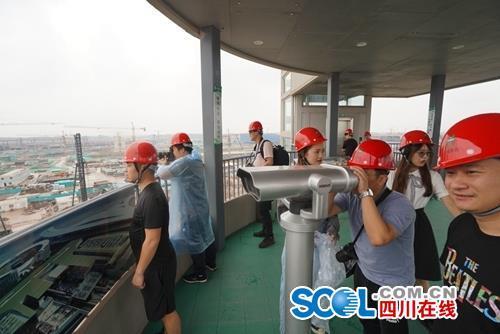 登上机场工地的瞭望塔,站在这片土地的制高点,采访团的记者们或用望远镜远眺,或不停地用相机记录,目不暇接。“天府国际机场的交通规划布局很棒,机场建设的同时就考虑了接送客的路面交通,地铁、高铁线路都在规划建设当中,我刚刚就看到那边正在修高铁的涵洞。”南海网记者刘洋说。