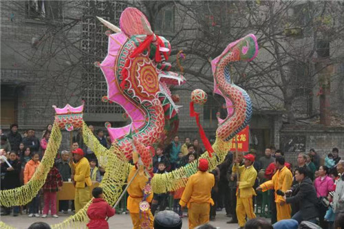 刘世全带着团队在胡市镇“舞龙”(胡市镇供图)