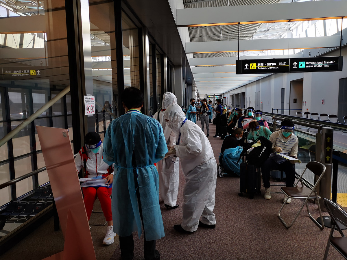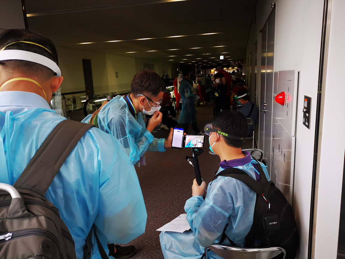 成都大运会观摩团此行主要目的其中之一便是观摩体验抵达东京的第一站——机场。据了解,本次奥运会对于入境人员的防疫措施早在一个多月前便开始了,东京奥组委要求所有奥运参与者提交入境后14天的活动计划,唯有获得批复才能在OCHA App上注册获得绿码,后者也是相关人员出境、入境的重要凭证。