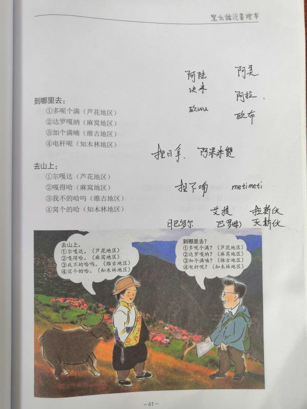 高原藏区村民不善汉语交流,杨斐利用业余时间学习的藏语在这里派上了用场。“额巴,捏真(朋友,说哈情况嘛)。”知木林片区的藏语从挂职干部杨斐口中脱口而出,打破了紧张尴尬局面,对立关系开始松动。“斯德得日喃乜日喃(吃饭没有呢)。”藏族老乡回问一句,让杨斐愣了几秒,他笑道,“米扎(没吃)。”随后,杨斐大口嚼起老乡递来的风干生膘肉,并回赠一封彭州磁峰麻饼。