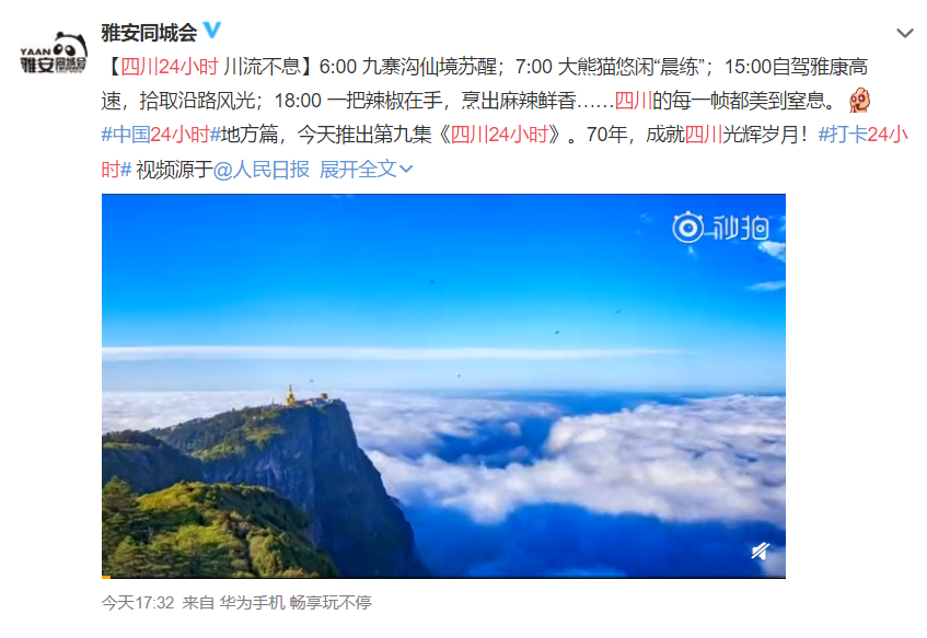 9月5日,由人民日报新媒体中心与四川日报·川报观察客户端联合制作的“中国24小时•地方篇”系列微视频之《四川24小时》上线。