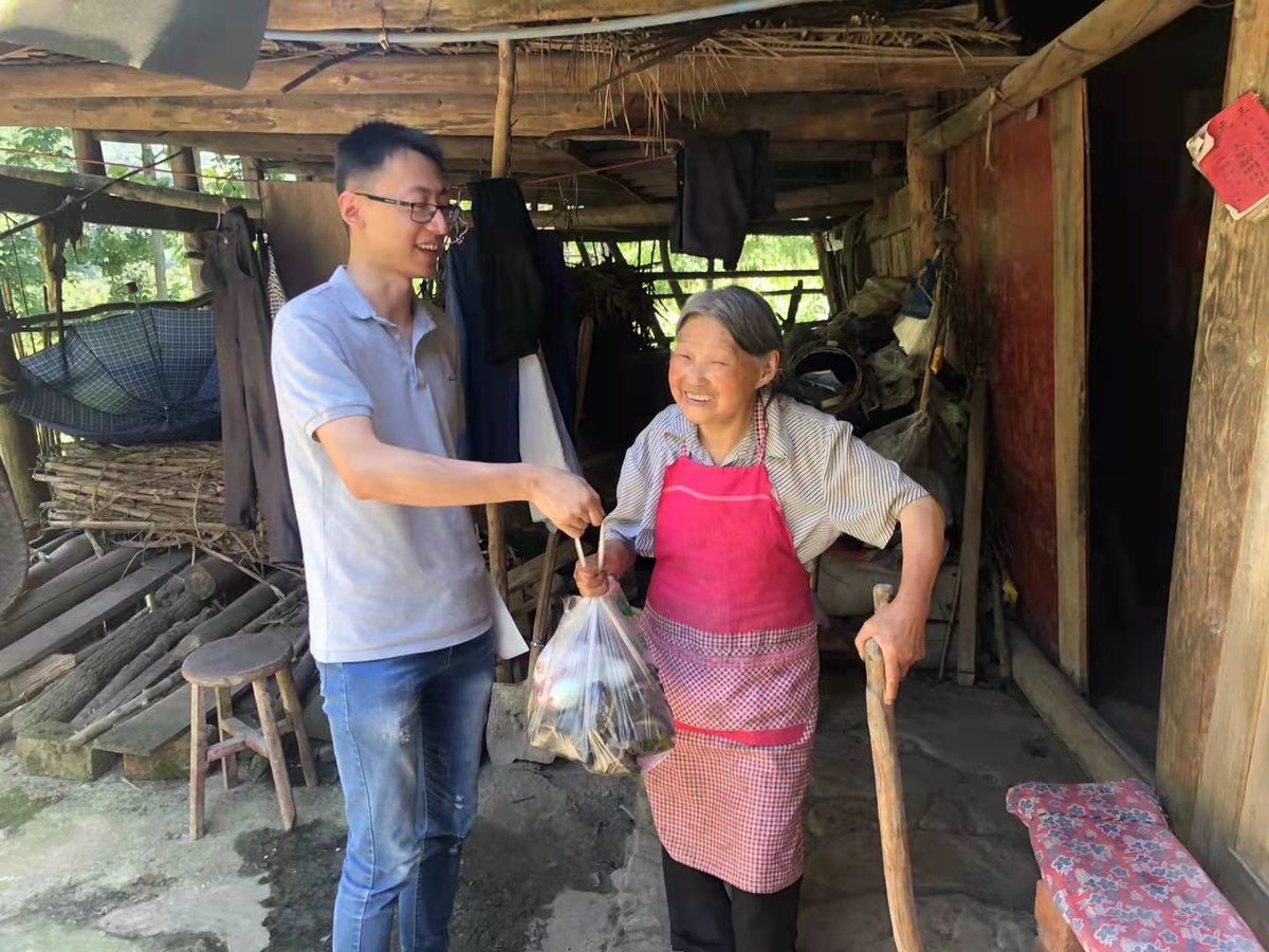 饶竣豪在村民家中走访 受访者供图