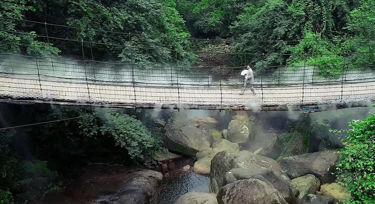 驱车从邛崃市区出发前往天台山,四周的景色逐渐从城镇向村落、山林转变,偶有清泉溪流穿插,正值炎炎夏日,不少游人前来天台山镇避暑戏水。