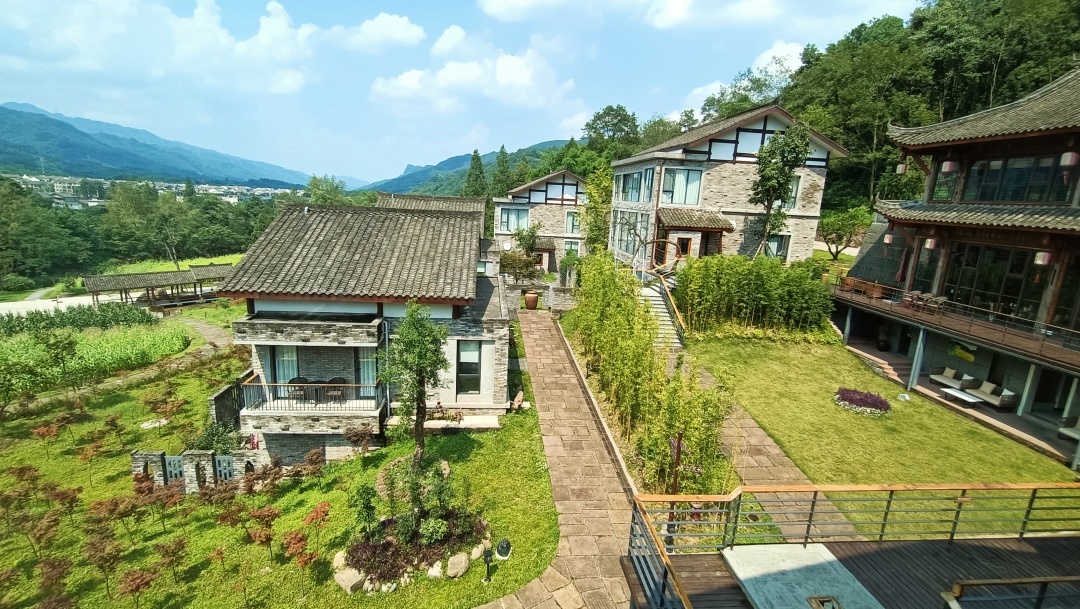 在环境打造上,天府红谷大量保留了原始林木与花草灌木,将大窖纸厂旧址和原址民居进行改造升级,在山林错落之间打造了具有传统川西民居风格的住宿、餐饮、休闲场所。