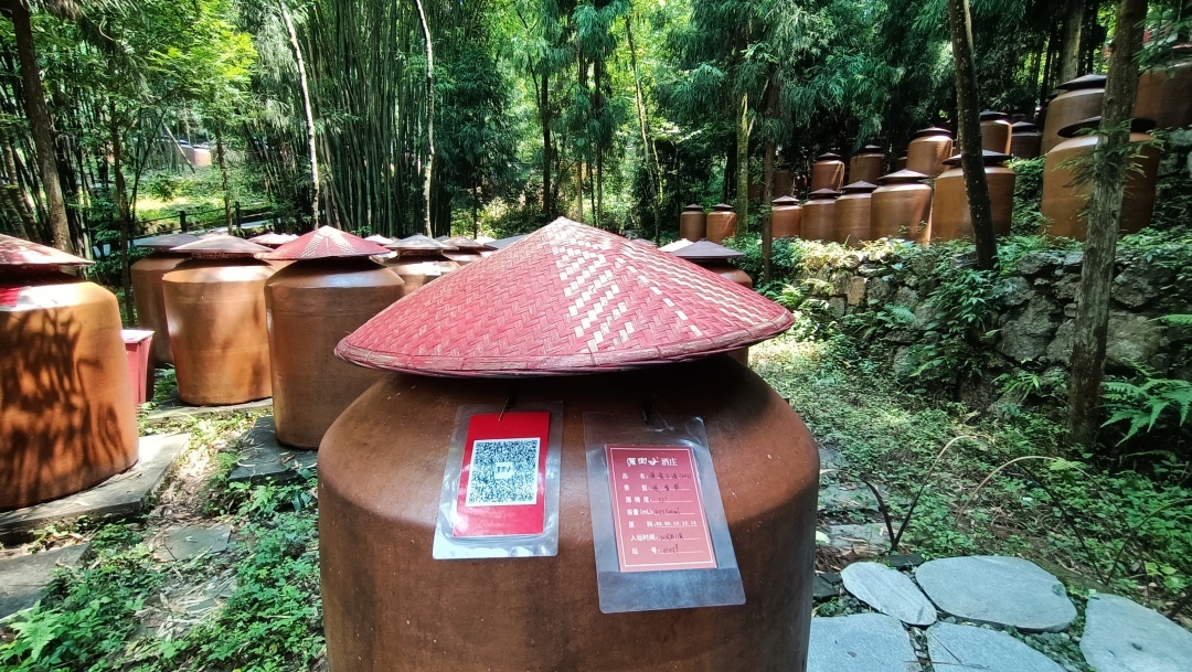进入葱郁的山林,漫山遍野的酒坛则令人震撼。吨坛、千斤坛、百斤坛、五十斤坛……大小不一的陶坛,装着甘冽醇厚的白酒藏在树林间。