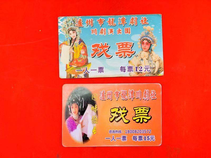 龙潭剧社的入场券—戏票。2002年2元一张到2019年的15元一张。张其摄