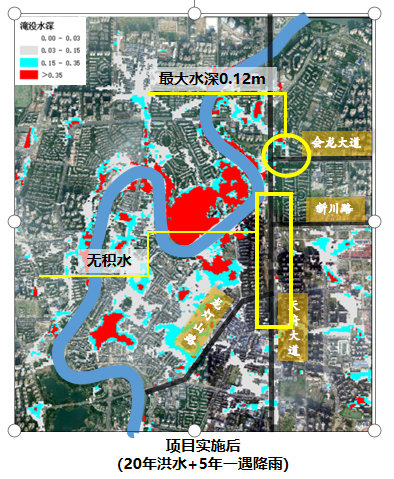 成都市会龙片区,位于天府大道、剑南大道、红星路南延线和海番路之间。这里地处城市交通主干线附近、人口稠密。但低洼的地势,以及附近的主要内涝排泄通道锦江华阳段河道宽度偏小、河床高度较高,极易在汛期对会龙片区等区域的管网形成顶托乃至倒灌,最终加剧内涝程度。
