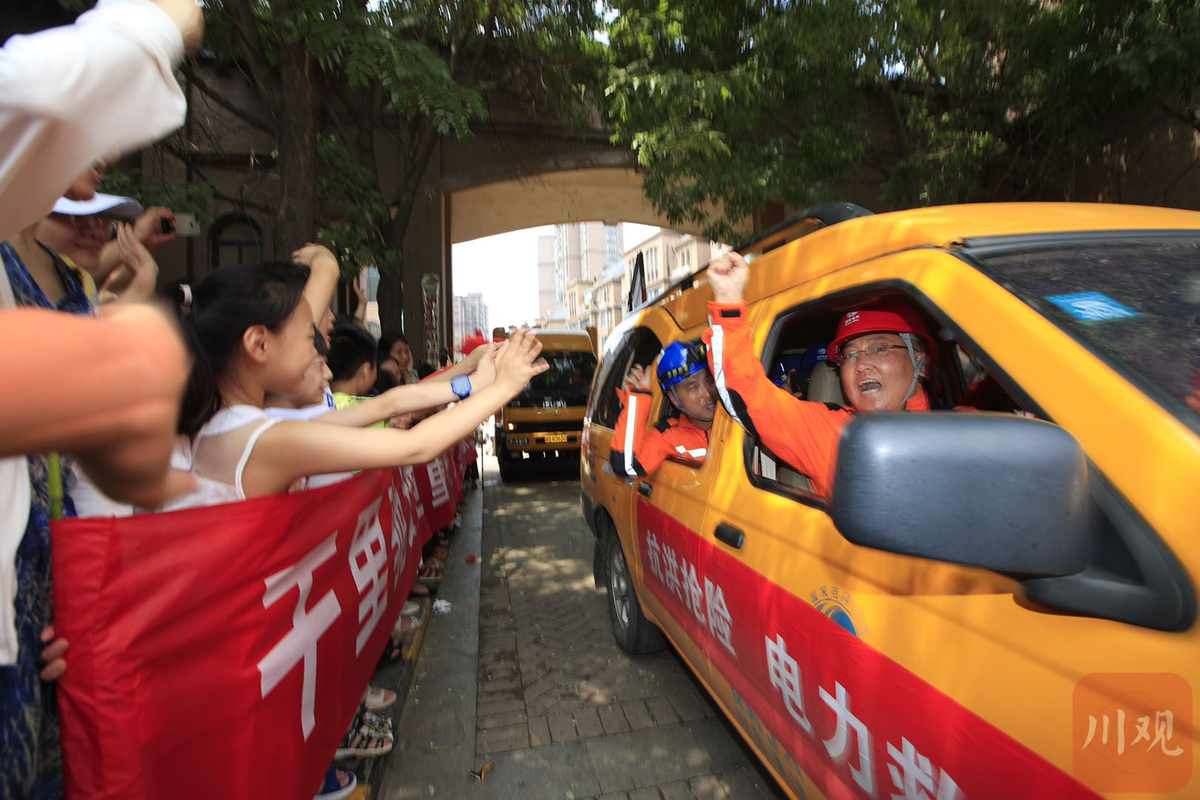 为尽快恢复供电,国家电网在全国各地调集近2万人驰援河南,其中,四川电力抢险先锋队已在郑州帮助上万户居民恢复用电。