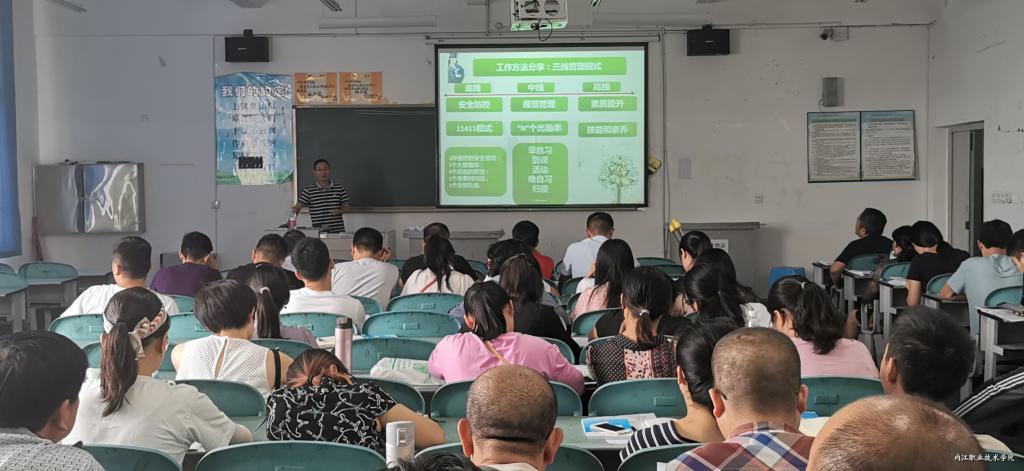 8月30日下午,内江职业技术学院在教学楼103教室举行2019级班主任岗前培训会。该校学工部(处)负责同志、各系部学办主任及2019级全体班主任80余人参加了会议,会议由内江职业技术学院学工部(处)长马炳利主持。