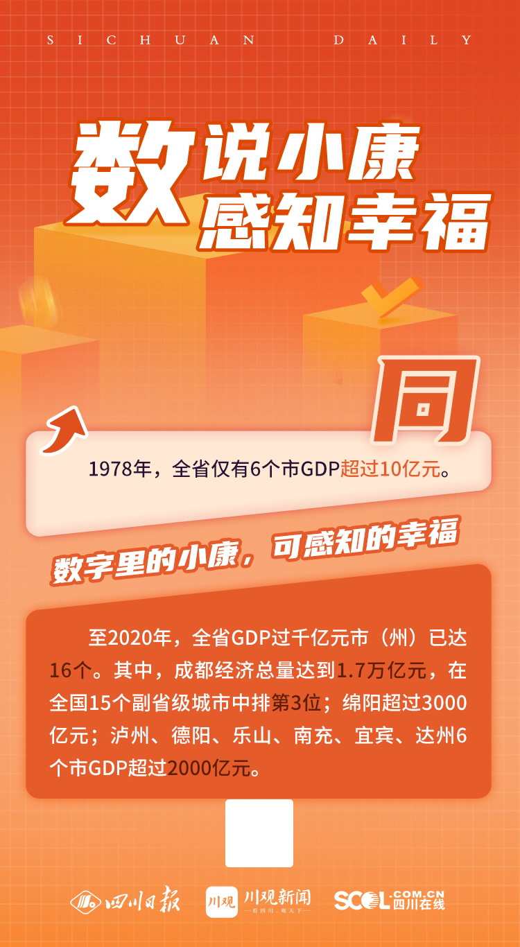 1978年,全省仅有6个市州GDP超过10亿元;2020年,全省已有16个市州GDP超过1000亿元。从10亿到1000亿,100倍增量的背后,是四川区域经济的整体飞跃;从6个到16个,从占比不到1/3到超过3/4,基数扩大的背后,是四川区域经济协调发展、齐头并进的最好证明。