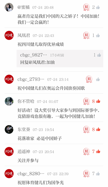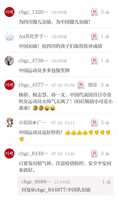 除了小何,还在更多粉丝通过在川观新闻评论区为活动点赞,并为中国健儿、四川健儿加油。