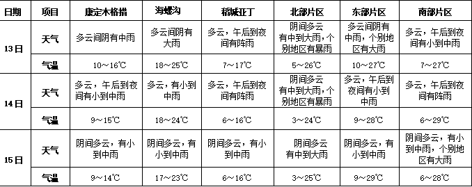 二、主要景区及各片区逐日天气预报: