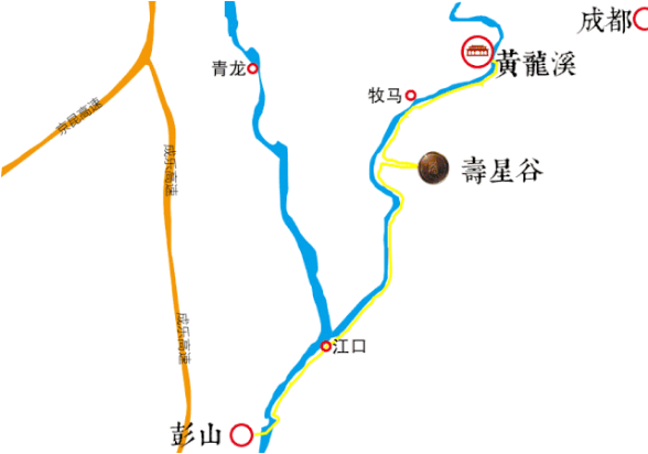 成都-剑南大道-黄龙溪-锦江乡联络村(直接导航输入“寿星谷”即可)。
