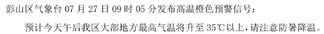此外,眉山市青神县、彭山区、东坡区也发布了高温橙色预警信号