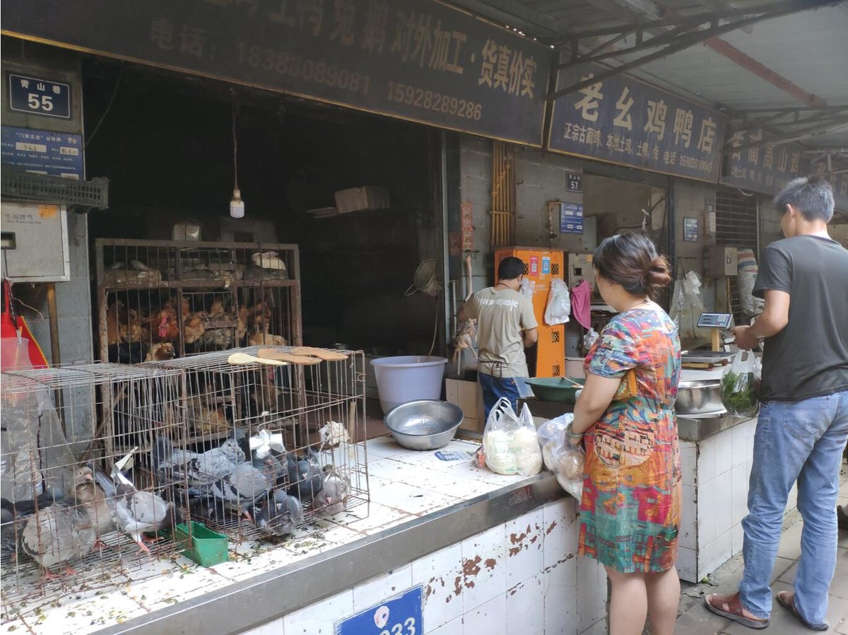 出售鸡鸭的摊位前,市民正在等着老板为自己清洗已购买的鸭。魏杰 摄