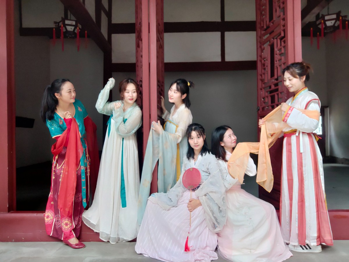 为此,“月华女团”纷纷“秀”出看家本领。喜欢“古风”,索性将汉服与东汉醪糟旅游景区结合,突出产业和历史韵味;肢体灵活,便将大家动员起来学习跳舞;擅长拍摄剪辑、则担负起MV拍摄和制作的责任......