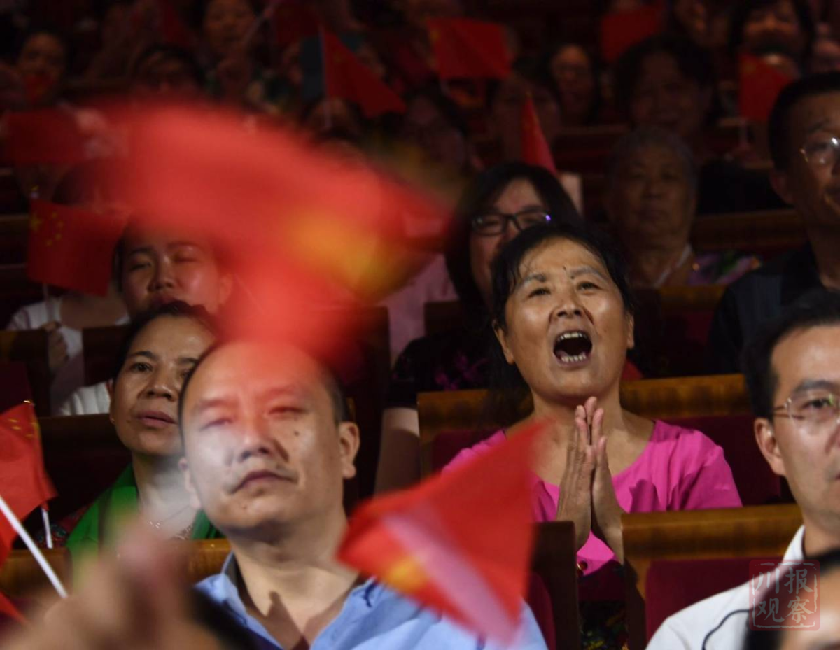 演出结束后,成都市民周女士久久不能平息激动的心情:“我们这代人是听着《红旗颂》《在希望的田野上》这些曲目长大的,今天再听这些歌曲,勾起了我们为建设祖国而奋斗的那些记忆,希望祖国永远繁荣昌盛。”