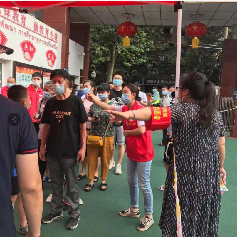 “请大家打开天府通二维码,准备核验!”在每一个核酸检测采样点上,都有涪城区巾帼志愿者和女社区工作者忙碌的身影,从清晨到凌晨,顶着烈日,克服各种困难,她们积极协助秩序引导、测量体温、流程介绍、扫码解说、人群分流等工作,为顺利检测尽自己的一份力量。