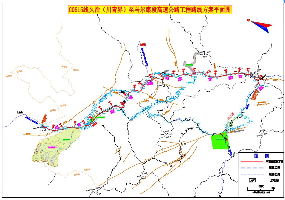 ——G0615线久治马尔康高速公路(224公里,总投资298亿元)。项目是《国家公路网规划(2013年—2030年)》中G0615线德令哈至马尔康高速公路的组成路段,是我省通往青海、新疆,对接丝绸之路经济带的一条出川大通道,在国家和全省路网中居于重要地位。路线起于我省阿坝县与青海省久治县交界处的甲尔多乡扎隆,与青海省花石峡至久治段高速公路相接,经阿坝县,止于马尔康市王家寨,与汶川至马尔康高速公路相接,路线长约224公里。项目建设对于完善国家和全省高速公路网,构建长江经济带综合立体交通走廊,带动旅游资源和扶贫开发,促进川西北经济快速发展具有重要意义。