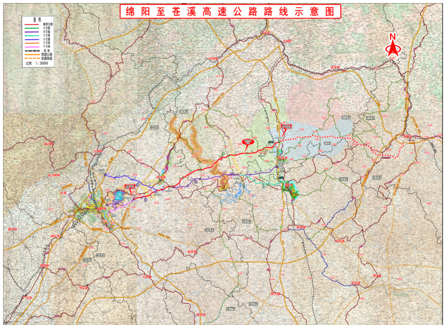 ——绵阳至苍溪高速公路(101公里,总投资133亿元)。项目是《四川省高速公路网规划(2014—2030年)》中7条东西横向路线之一,是成都、德阳、绵阳、巴中经万源至陕西出川高速公路的又一通道。路线起于绵阳市魏城镇南,接G5成绵高速扩容,经梓潼县、剑阁县,止于苍溪县茶店乡,与G75兰海高速广南段相接,路线全长约101公里。项目建设对改善区域交通条件,完善区域高速公路网,实施精准扶贫,带动区域经济加快发展,加强成都平原经济区与川东北经济区相互联系,支持革命老区的发展具有重要的意义。