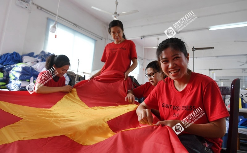这面国旗由该企业近20名工人,自发利用休息时间,历时11天,全手工精心缝制完成。