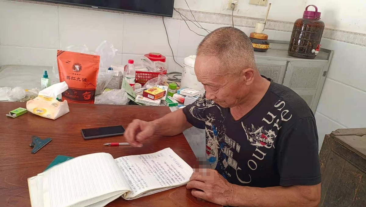 7月21日,吃过晚饭,夏日晚风带来片刻清凉,遂宁市蓬溪县莲花社区农户蒲全祥和老伴在离家不远的菜市场买土豆回来后,走进卧室,娴熟的从床边拿起账本,走到堂屋的四方桌子上,一笔一划记录下今天的花费:交气费100元、买土豆4斤6元……