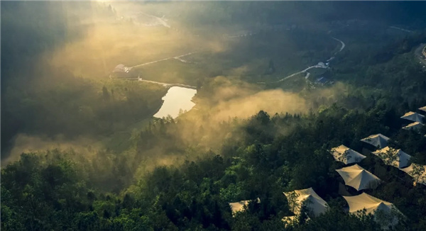 度假区内峰丛河谷、云海翻腾、山峦叠嶂连绵不绝。夏季平均气温20℃-26℃,植被覆盖率83%,层峦高树把烈日挡在山外,一股股凉风从密林中穿透而出,沁人心脾,如“天然氧吧”“避暑天堂”。