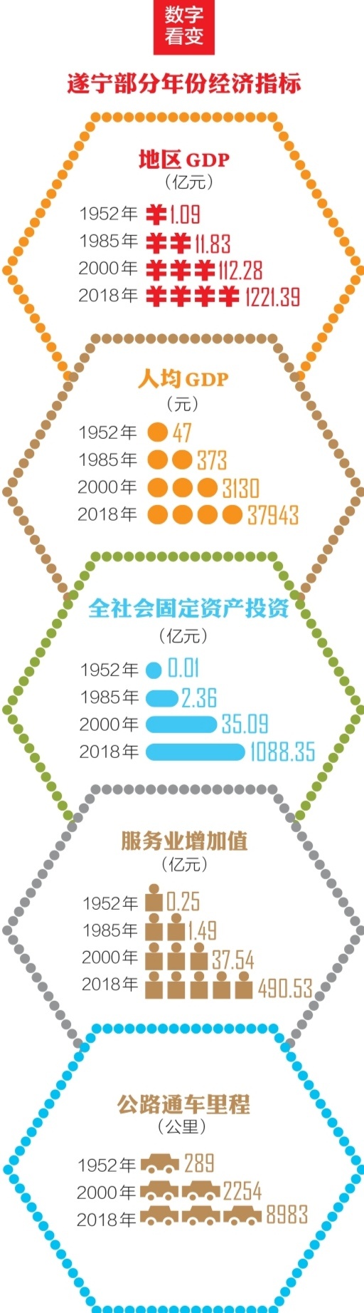 2018年8月,中共遂宁市委七届六次全会召开,提出了建设成渝发展主轴绿色经济强市的奋斗目标,加快了遂宁融入成渝经济群的步伐。