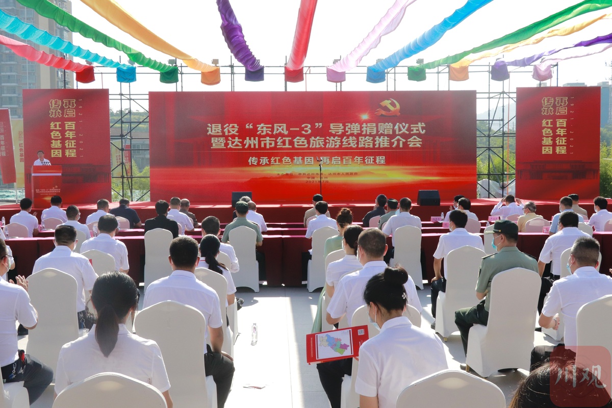 7月29日上午,达州市通川区神剑园景区,以“传承红色基因·再启百年征程”为主题的退役“东风-3”导弹捐赠仪式举行。去年11月运抵达州的退役“东风-3”导弹正式亮相。
