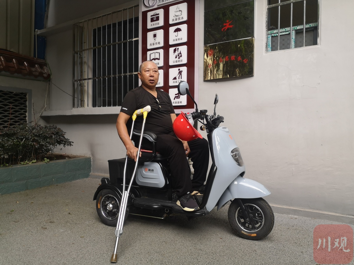 有了电梯,杜世明靠电动三轮车可生活自理。袁城霖 摄