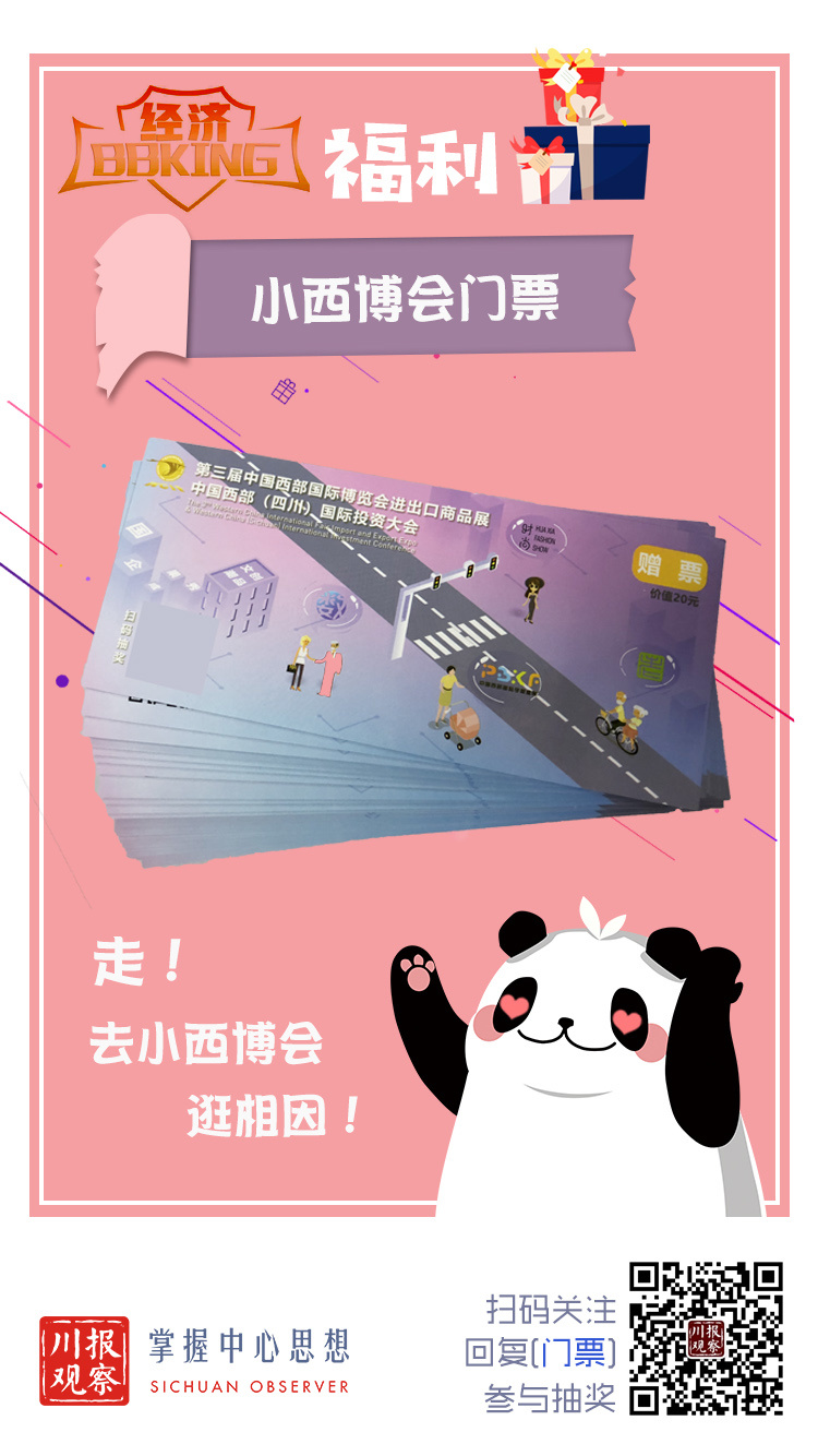 吉祥物川宝已经准备好价值20元一张的小西博会门票100张!