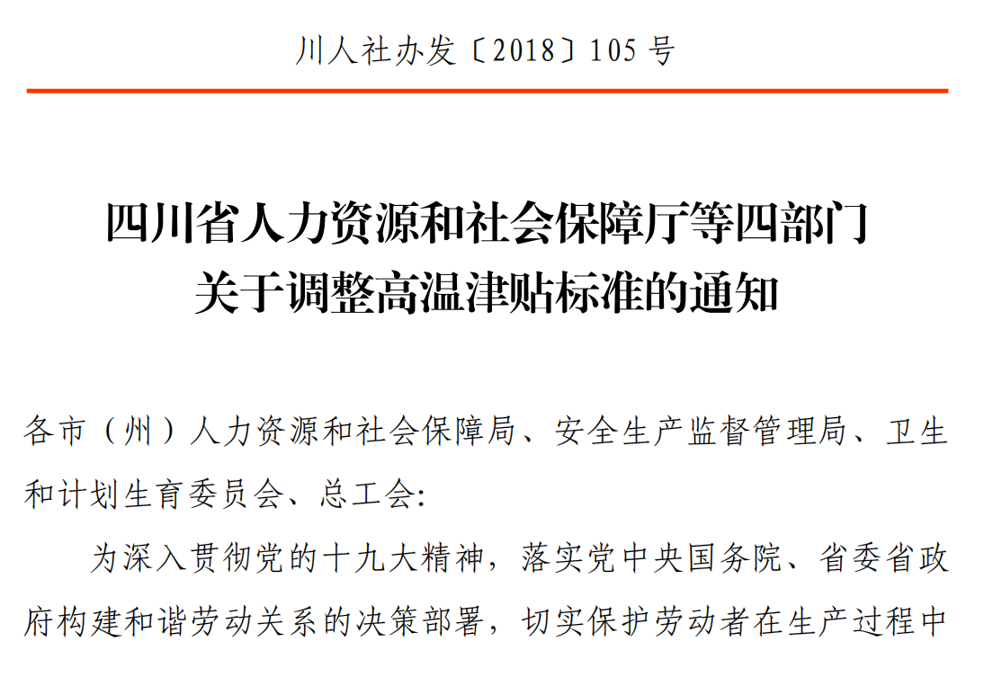 记者从省人社厅了解到,目前我省高温津贴延续2018年7月1日起执行的政策,高温津贴标准为每人每天10元-18元。各市(州)在此范围内,结合实际,执行本地区高温津贴标准。