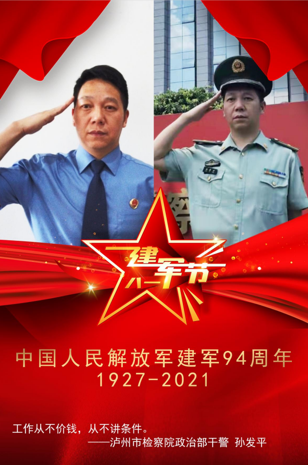 泸州市人民检察院政治部干警孙发平1998年12月底入伍,成为一名军人。2020年,孙发平从部队转业到地方,2021年1月来到检察院工作的。孙发平在检察院工作的时间不算长,但这大半年让他感受最深的就是“三心二从一意”,“三”即领导的关心、热心、暖心;“二从”即工作从不讲价钱,从不讲条件;“一意”即一份诚意。脱下穿了22年的“橄榄绿”,换上崭新的“检察蓝”,角色转变,初心不改。检察机关首先是政治机关。作为一名检察战线的“新兵”,我将继续发扬人民子弟兵的优良作风,自觉提高政治站位,坚定理想信念,把对党绝对忠诚作为首要的政治原则、政治本色、政治品质,主动对标政治过硬、业务过硬、素质过硬、纪律过硬、作风过硬的要求,做一名合格的新时代检察人。