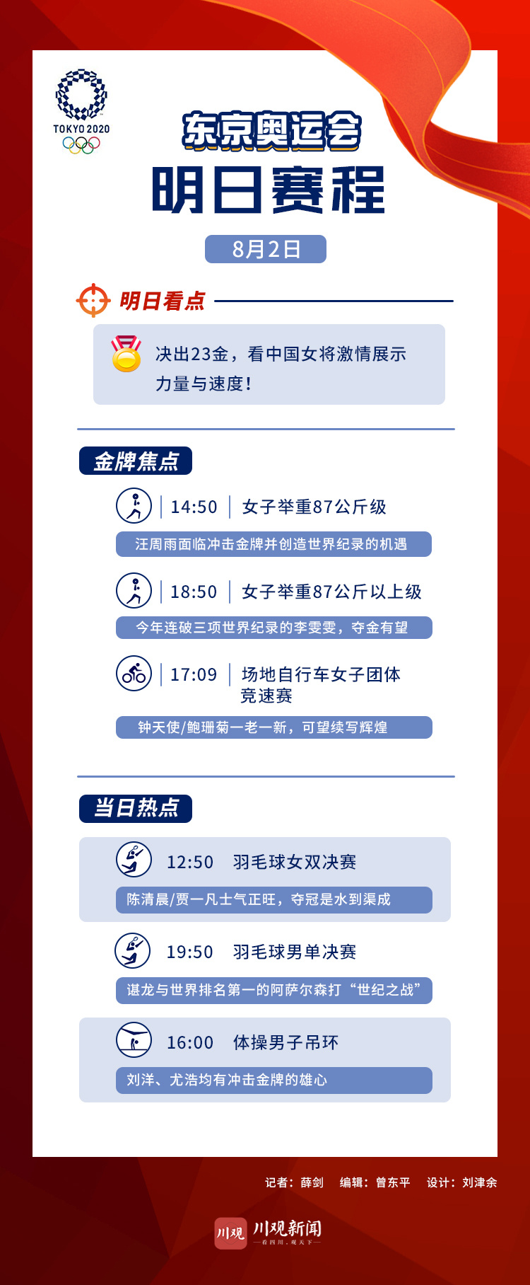 今晚,记者继续预测8月2日中国军团的表现,为大家观战奥运添一分竞猜的乐趣。川观新闻的竞猜活动正办得如火如荼,可点击标题参与:《奥运竞猜赢大奖 20万人次参与的大项目赶紧上车》
