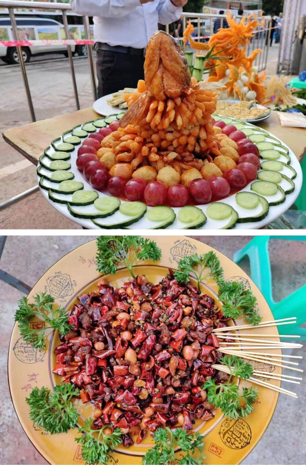 来自泸州各大农家乐的老板带着葱烧鲫鱼、辣子鸡等特色菜品亮相丰收节 胡容摄